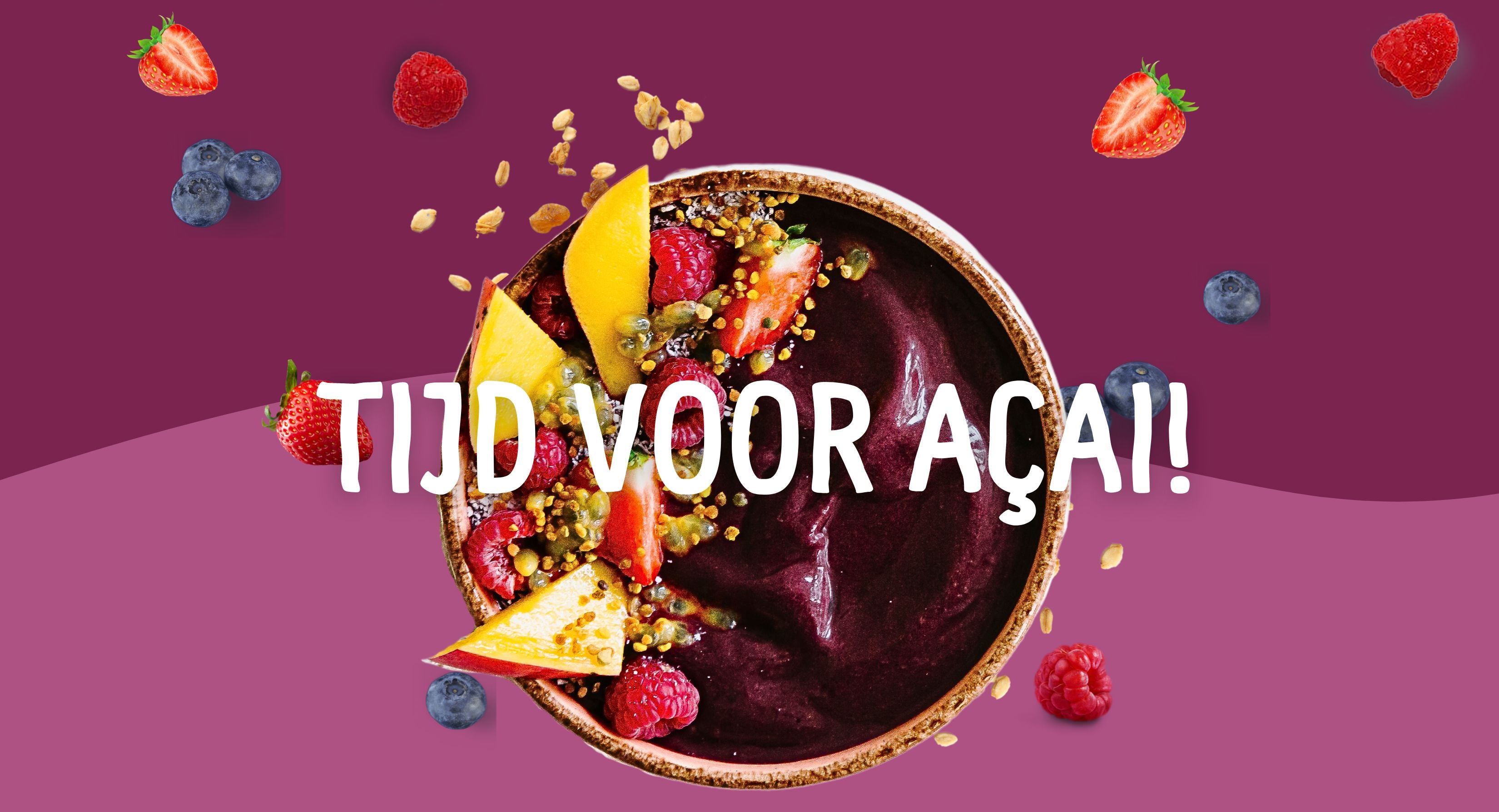 Açai (uitgesproken als ah-sa-ee) is een kleine, donkerblauwe bes die aan de Açai palm in de regenwouden van Brazilië groeit. De krachtige bes staat bekend om zijn rijke voedingswaarden en wordt terecht beschouwd als een powerfood. Met haar unieke, chocolade-achtige smaak kun je met de Açai bes de meest verrukkelijke Açai bowls, smoothies en andere heerlijke gerechten op tafel toveren!
