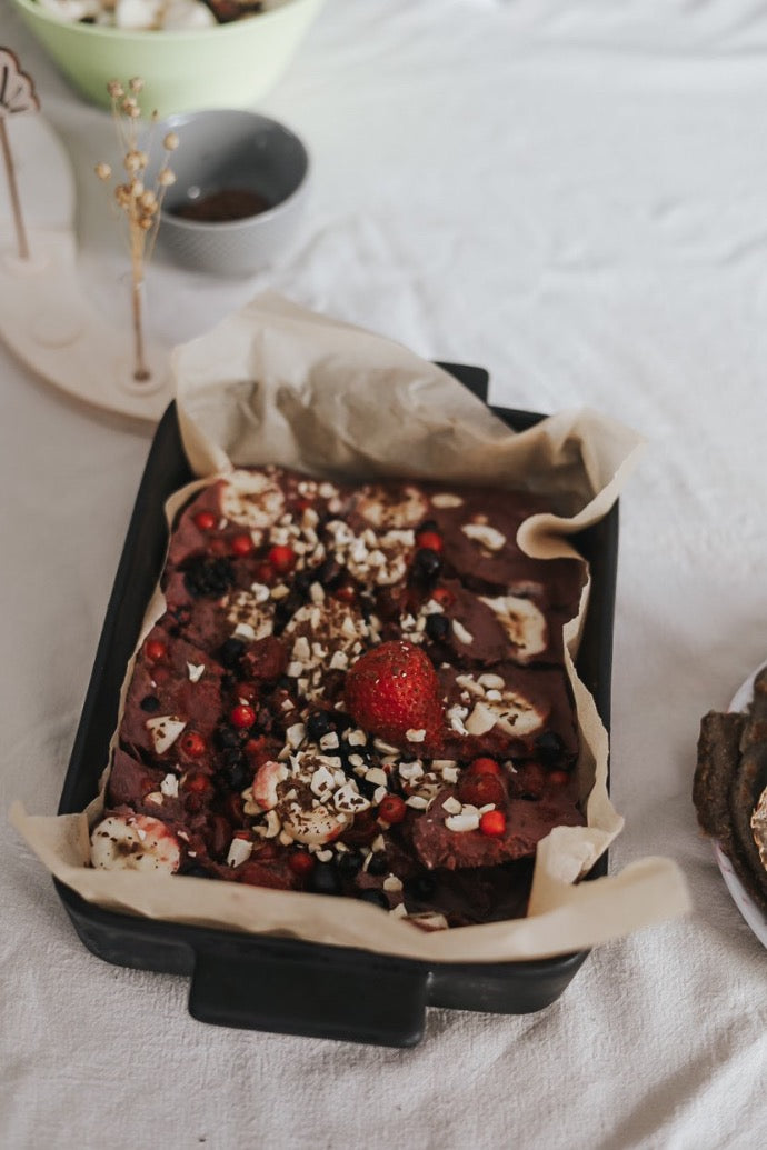 Spreid het mengsel uit op een bakplaat, voeg je toppings toe en plaats het in de vriezer voor minimaal 2 uur.