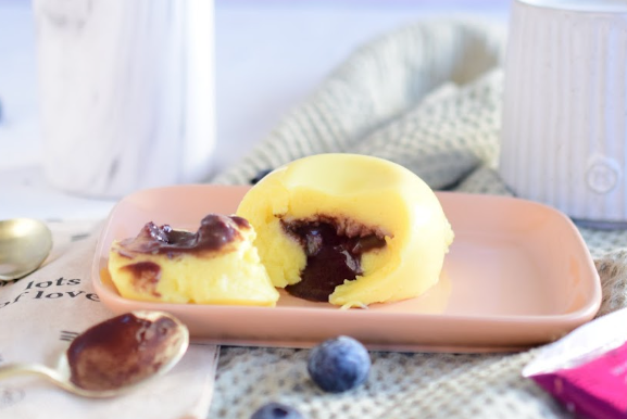 Laat het 10-15 minuten afkoelen en duw de bevroren pulp bolletjes in het midden van de pudding.