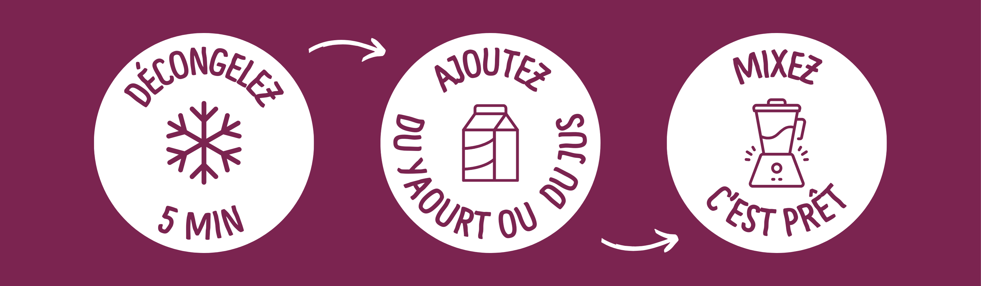 ÉTAPE 1 : Sortez 1 sachet du congélateur, ouvrez-le et versez le contenu dans un grand pot ou un mixeur.